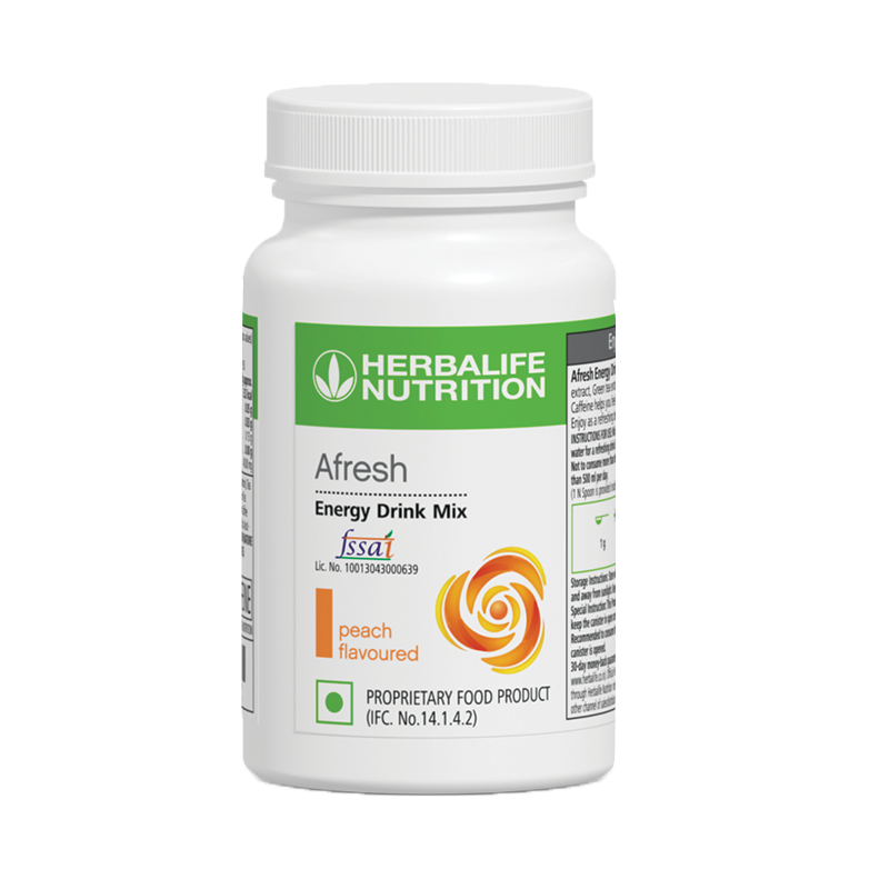 Afresh Energy Drink Mix contains Orange Pekoe extract, green tea extract and natural caffeine powder. Caffeine helps you feel energized and supports alertness. Enjoy as a refreshing beverage at any time of the day.